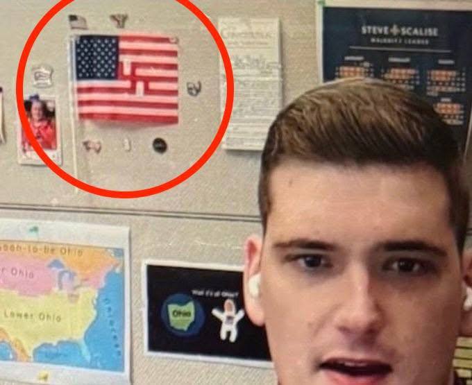 В офисе конгрессмена-республиканца Дейва Тейлора (от штата Огайо) в здании Капитолия был обнаружен американский флаг, модифицированный так, чтобы красные и белые полосы образовывали свастику.
