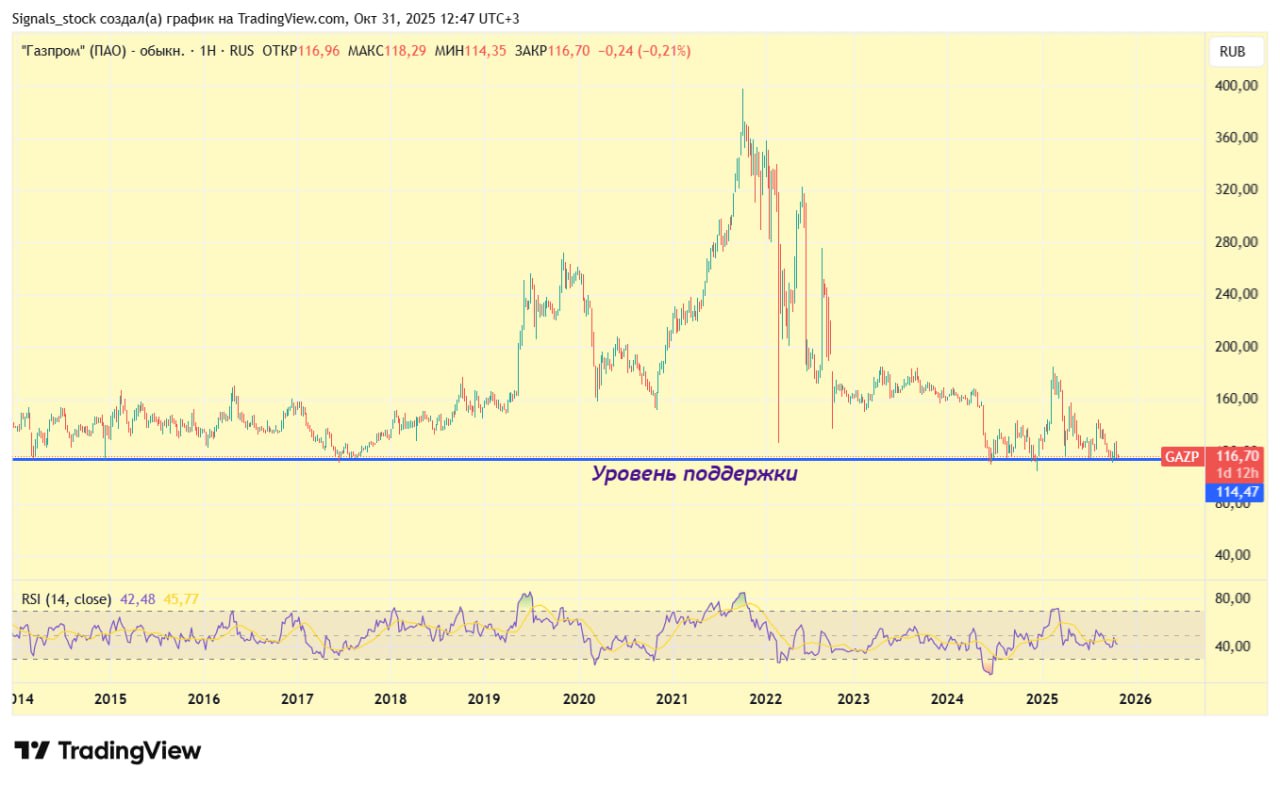 3️⃣ Газпром #GAZP - а тут по-прежнему держим важнейший уровень 115.