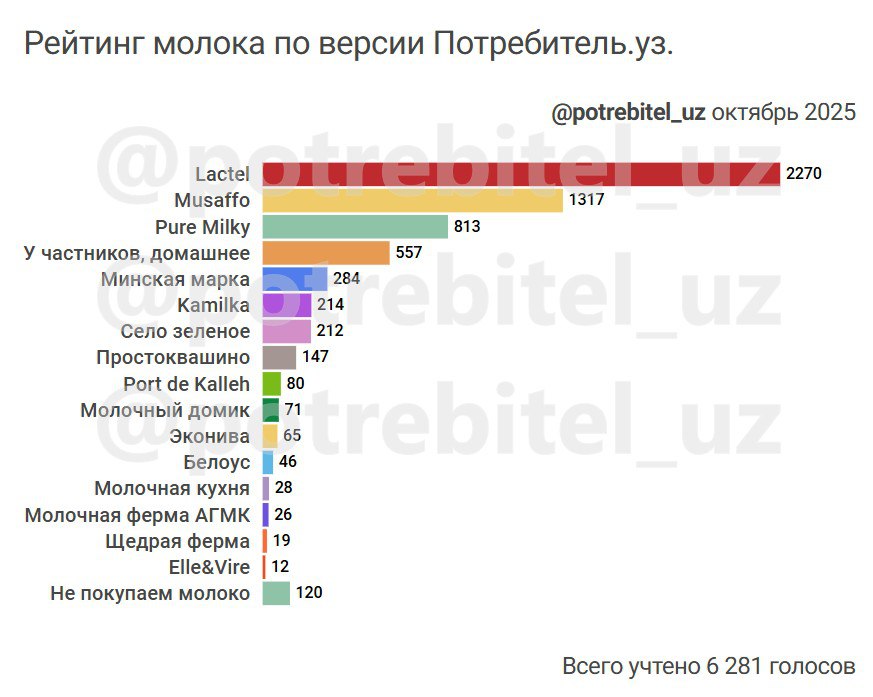 Всего участники назвали 15 брендов молока + домашнее молоко от частников.