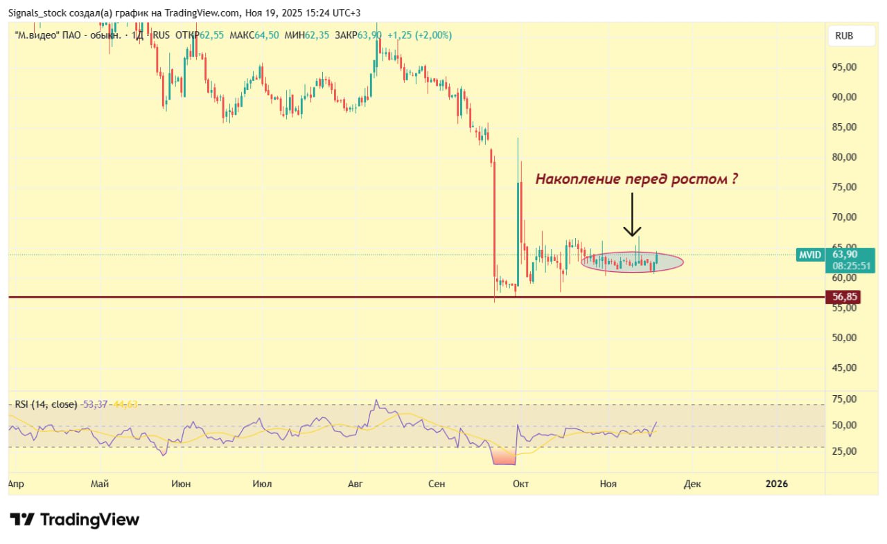 В подобном боковике были акции #SPBE - буквально позавчера писал о точке входа и вот за 2 дня уже 11% роста. Так что думаю в #MVID вполне можем увидеть нечто подобное 😎