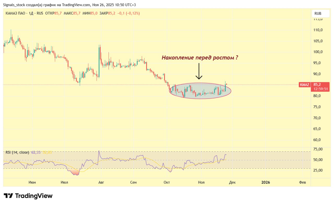 У акций уже есть опыт пампа - в августе похожий боковик закончился 15% ростом, тогда также давал наводку на покупку. История рискует повториться.