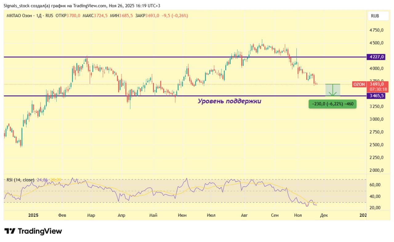 За это время рынок даже немного вырос, а вот акции Озона упали на 6%. Чаша весов продавцов перевешивает и скорее всего в ближайшее время ситуация не сильно изменится.