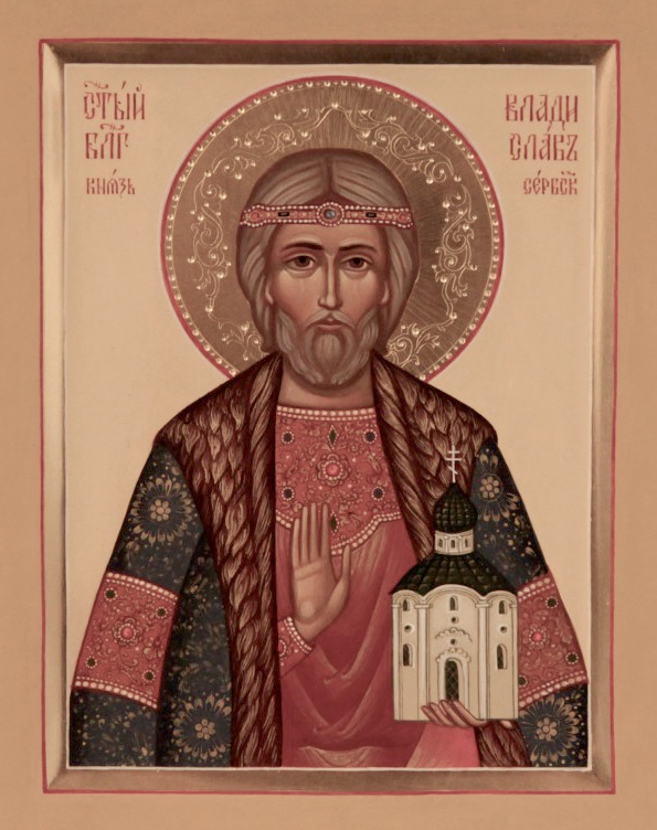 Удобре́ние Христо́вых страстоте́рпец,/ и о́чи Христо́вы Це́ркве,/ о́чи просвети́те душ на́ших,/ Се́ргие многострада́льне и Ва́кше пресла́вне:/ моли́теся ко Го́споду,/ я́ко да убежи́м тьмы грехо́вныя,/ и све́та яви́мся о́бщницы невече́рняго,// моли́твами ва́шими, святи́и.